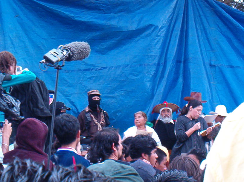 Indigenous leaders and Subcomandante Marcos spoke in front of a captive audience in the midst of rain at La Hormiga, a poor largely indigenous neighborhood located at the outskirts of San Cristobal. January 4th, 2006