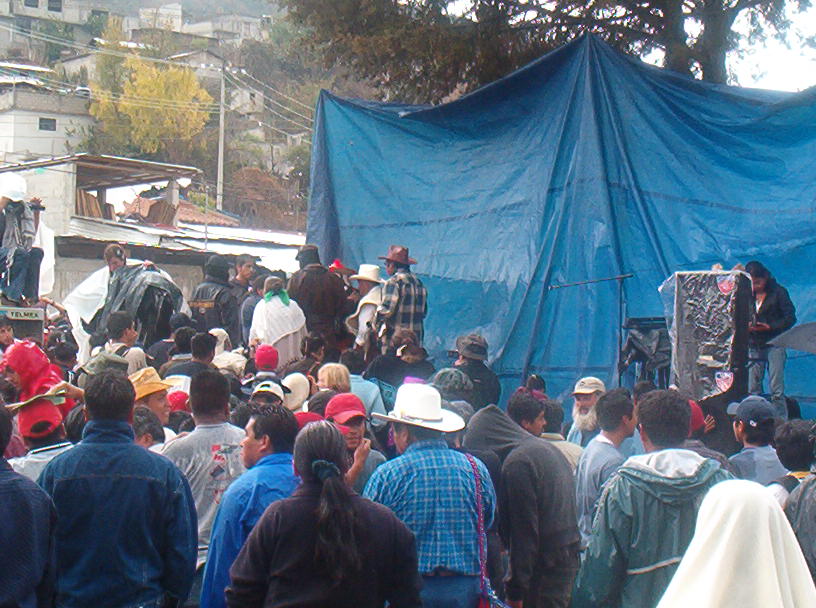 Indigenous leaders and Subcomandante Marcos spoke in front of a captive audience in the midst of rain at La Hormiga, a poor largely indigenous neighborhood located at the outskirts of San Cristobal. January 4th, 2006