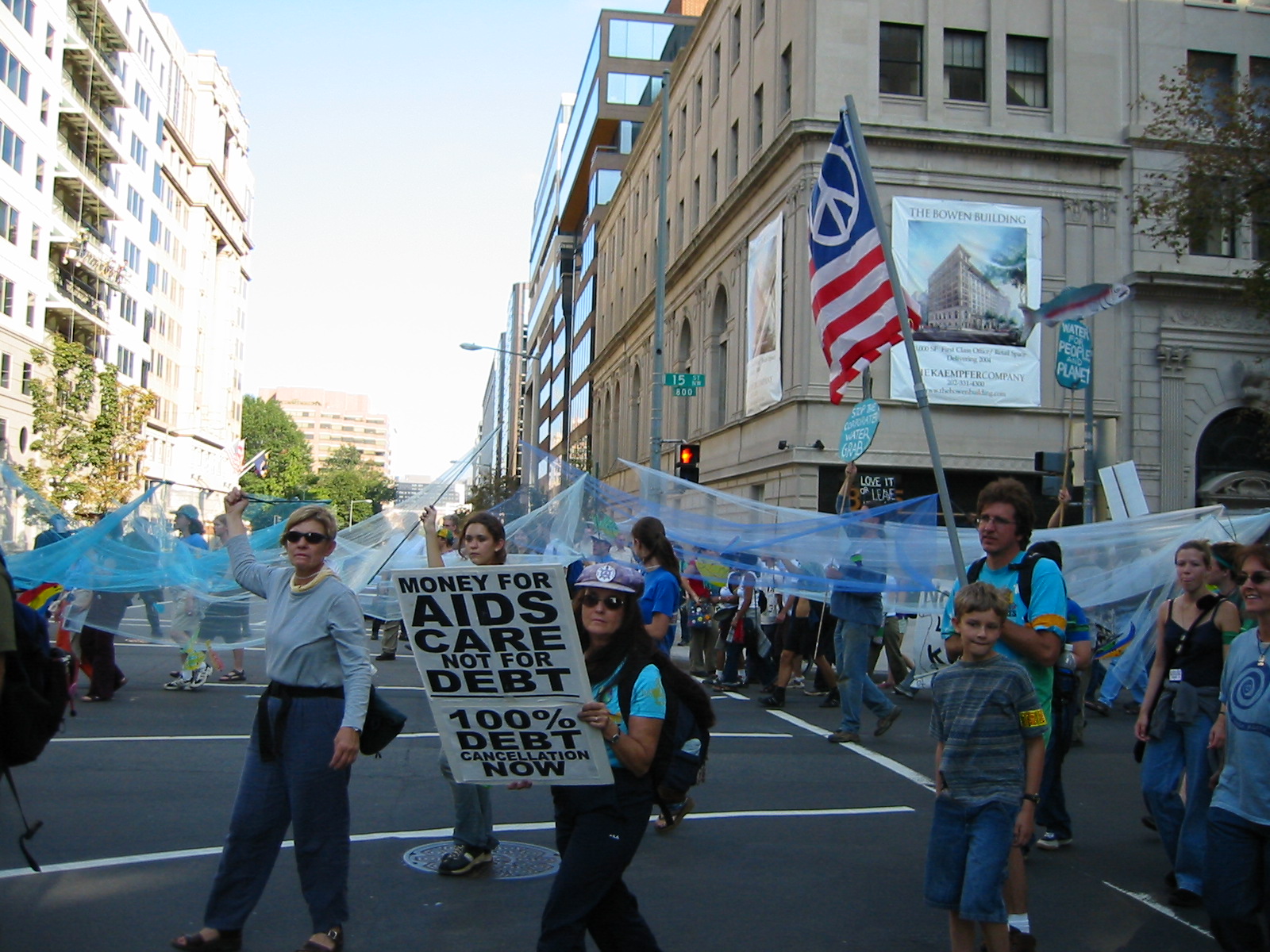 More photos taken at the Mobilization for Global Justice rally and march in Washinton, D.C. against the IMF and World Bank. Protestors first met and rallied at the Sylvan Theatre near the Washington monument and then marched through downtown Washington.