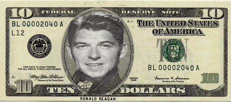 A move is afoot to supplant Alexander Hamilton’s image on the very currency he helped strengthen with that of a recently-departed president whose main political achievement was establishing style over substance. Should we put Ronald Reagan’s mouth (and the rest of his face, and for that matter, his hair) where our money is? For the answer, read on. |