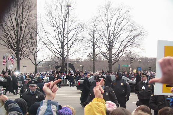 As the VP and President drove by, they enjoyed the sight of thousands of fingers. Some constituting peace signs, others demonstrations of frustration and repulsion. |