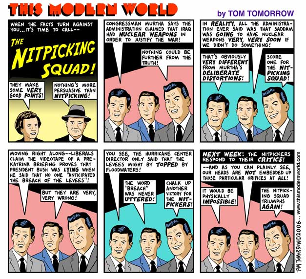 This post fails to mention Bush's most obvious breach, domestic wiretapping. In this case, he's pretty much admitted to subverting the Constitution and committing a felony. Unortunately, he'll probably get away with a light-handed "censure, " if even that, because of the of the blind allegiance of Republicans and the obvious impotence of the Democrats.