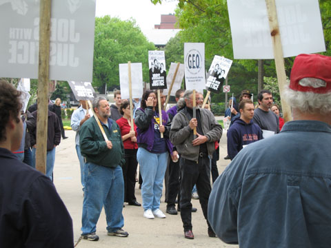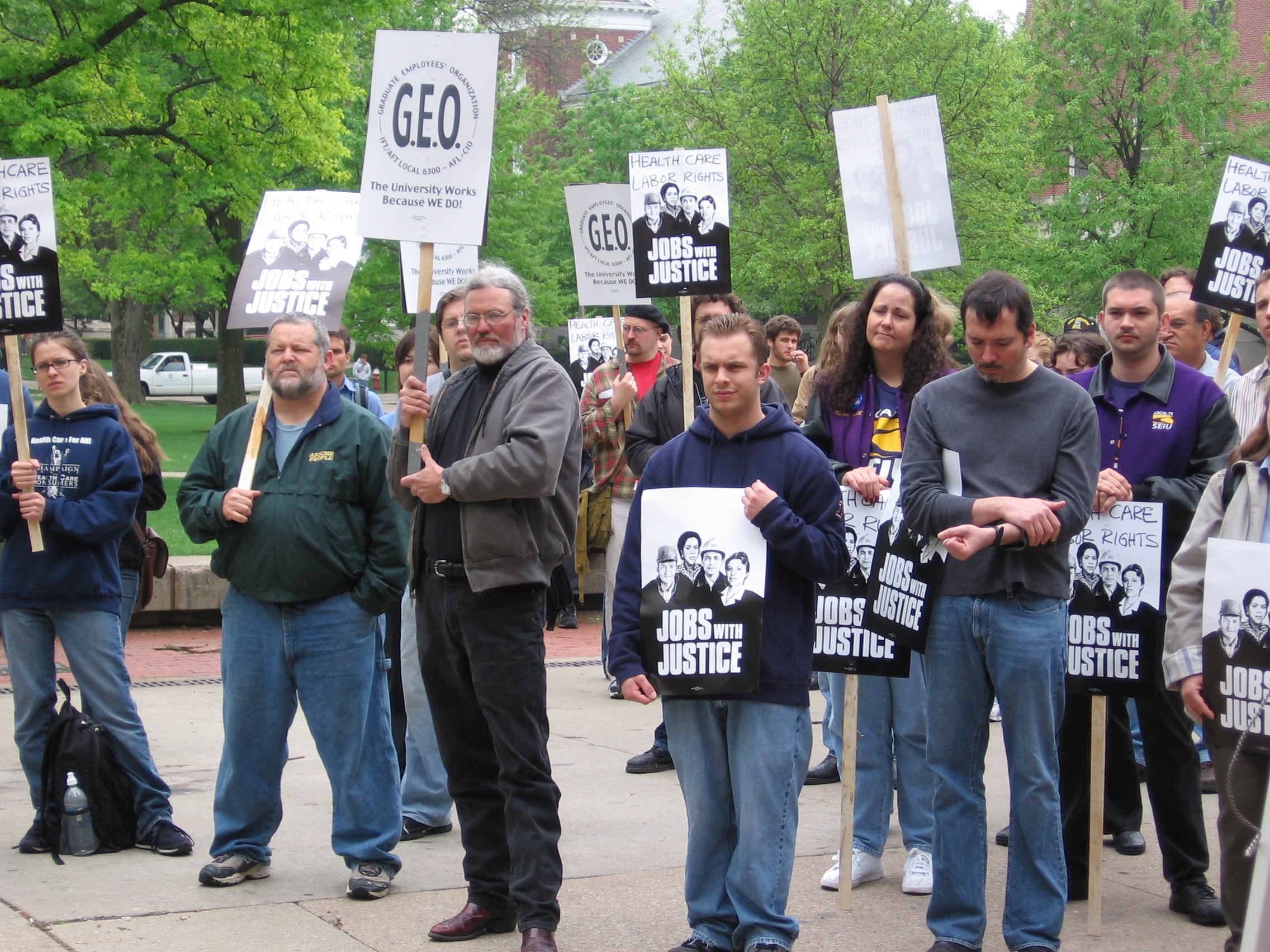 Some pictures from the rally for health care on the U of I campus. Local unions and community members came to celebrate May Day and support the GEO as it continues negotiations for better health care for its employees.