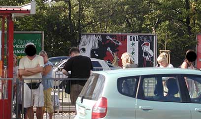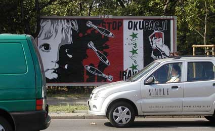 WARSAW (CAPITAL OF POLAND) - At the high noon, on 25 July 2006, I stuck with friends political billboard against occupation of Iraq. It was illegal action and it took us about 20 minutes. We were very lucky becouse we had find good place near ,,Arkadia'' trade center, which is one of biggest trade centers in Europe. Every week tousands of people come to this place. Slogan on poster says: ,,STOP OCCUPATION OF IRAQ''. This is our (Edward Abramowski Anarchist Group) fifth project and we were making it for two weeks. Cheers!