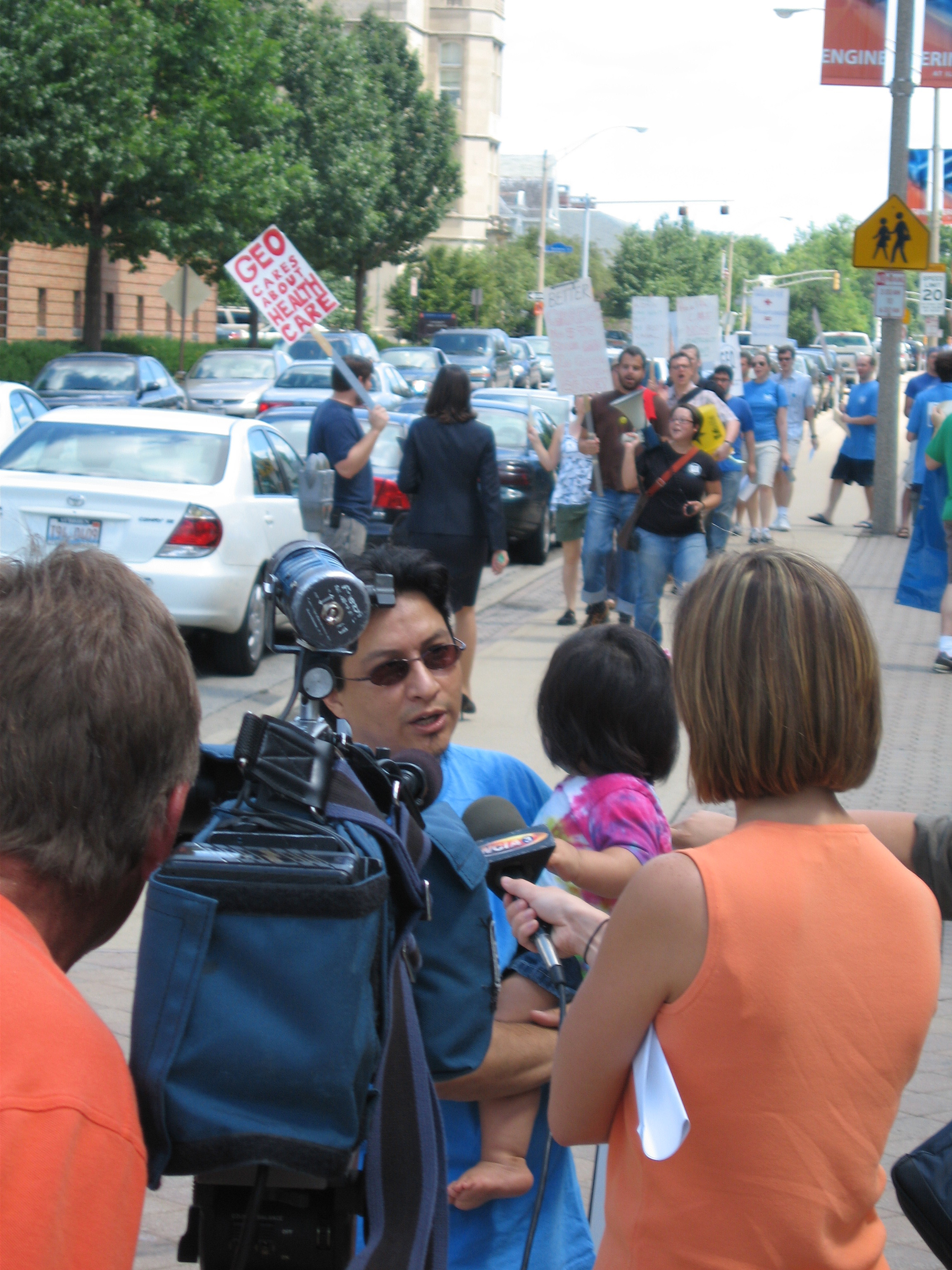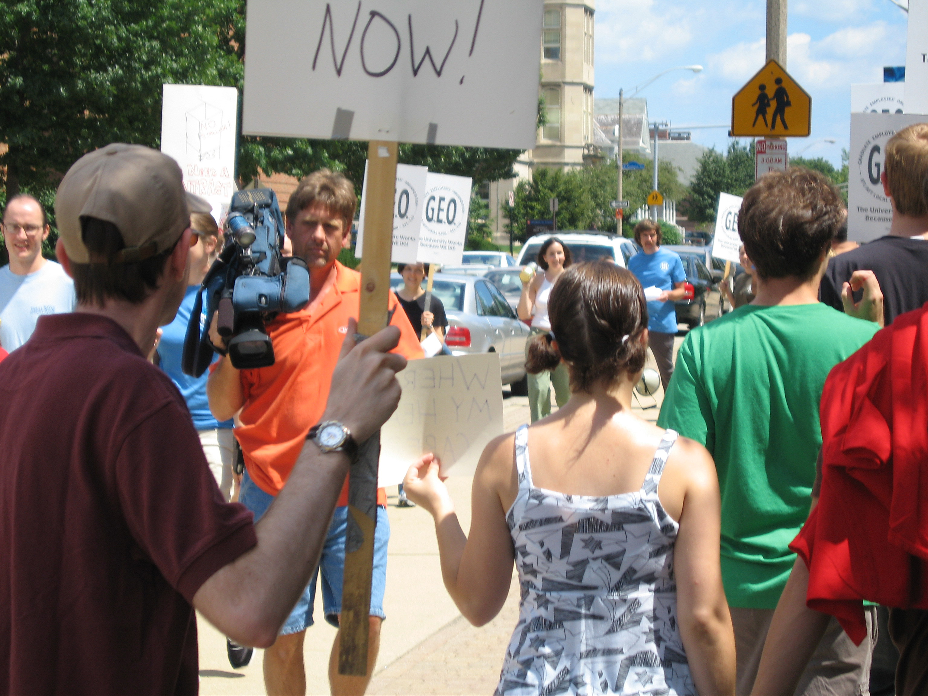 “The fall semester begins one week from today,” said Christopher Simeone, lead negotiator for the Graduate Employees’ Organization (GEO). “Rather than greeting teaching assistants and graduate assistants with job security and respect, the University will welcome us back with frozen wages and unaffordable health care.” |