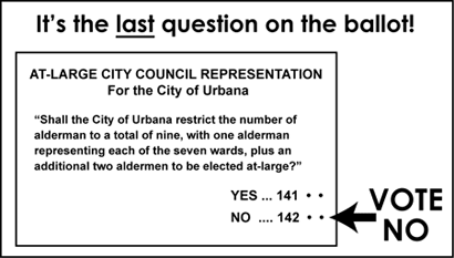 Now if Demonrat was making a legitimate point, instead of engaging in ludicrous petty politics, he would be also be denouncing in the same breath the interference of John Foreman and the News-Gazette, whose cheerleading and endorsement in favor of at-large has been quite apparent all along. Last time I checked, most of those people aren't registered to vote in Urbana, either.